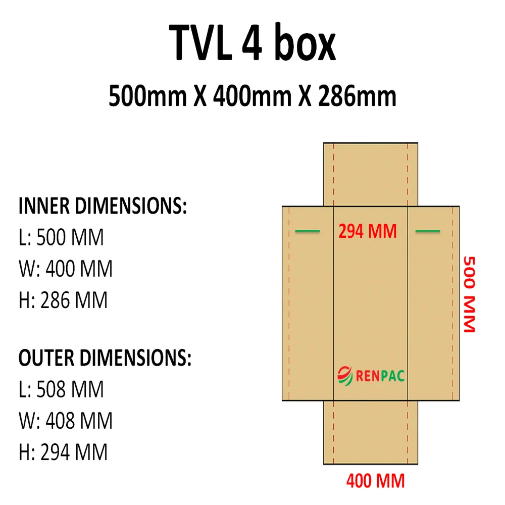 SKU Code : PAC-TVL4-SWB Product Description : Box | TVL4 | Single Wall Product Dimensions : 500mm X 400mm X 286mm